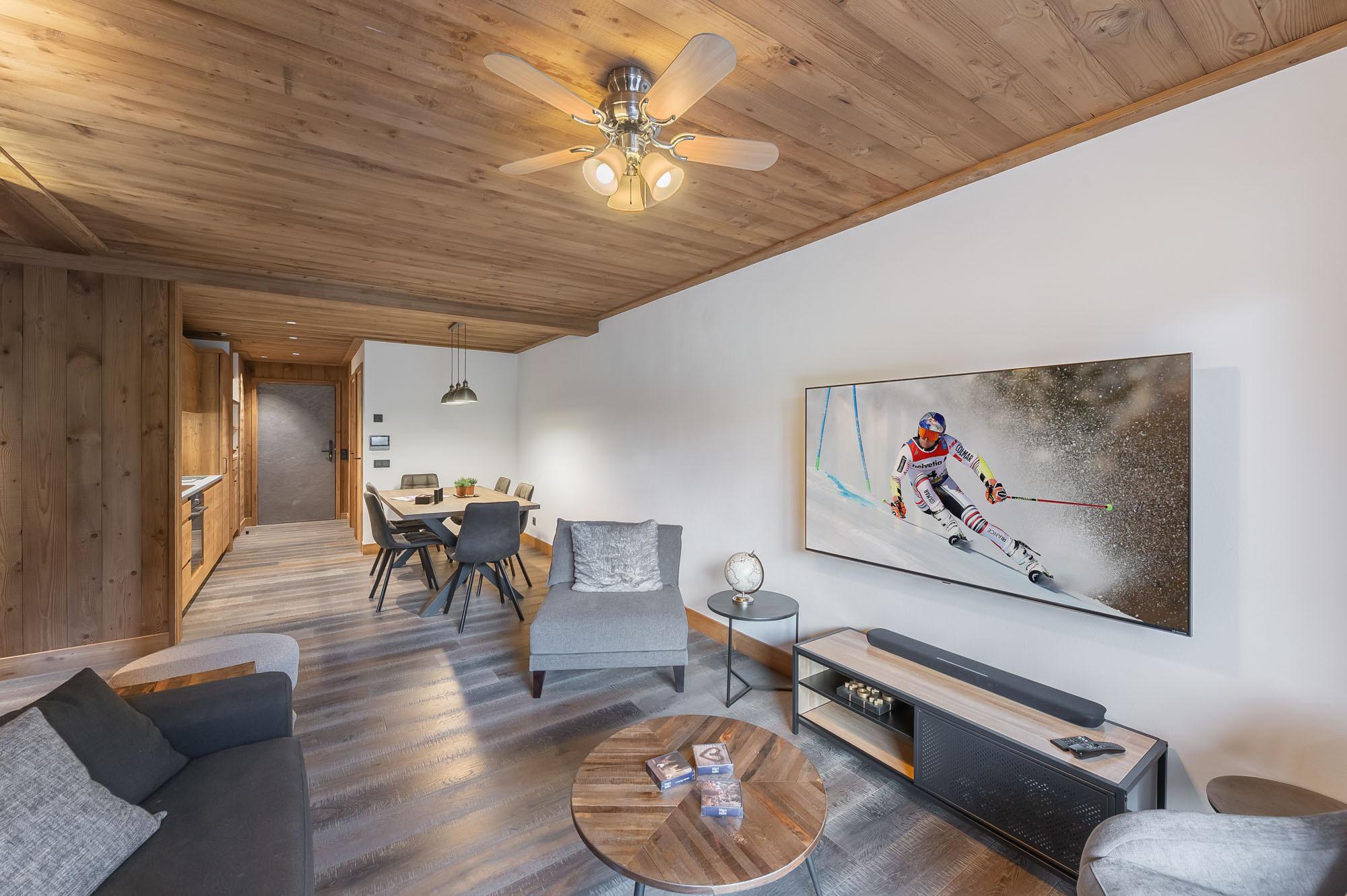 Located in the heart of the high-end residence Le Savoie in Val d'Isère, the apartment Savoie 21 enjoys a prime location, close to the slopes, ski lifts and all amenities. With a surface area of 150 sqm, the property offers an exceptional view of the mythical face of Bellevarde and the head of Solaise.