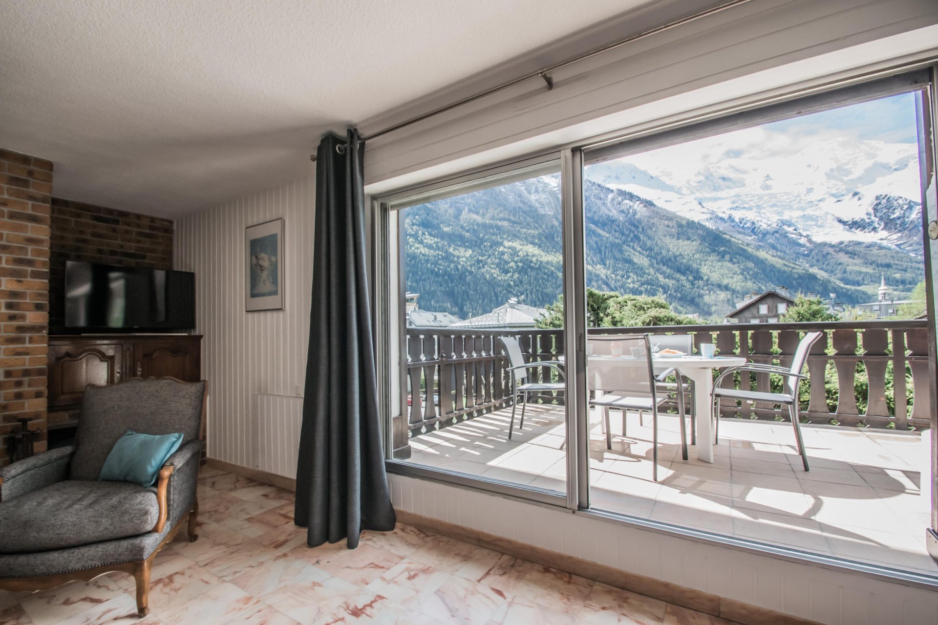 Spacious apartment located in the residence "Clos du Savoy", at the foot of the Savoy slopes and close to Chamonix pedestrian area. The large terrace offers a superb view of the Mont-Blanc.