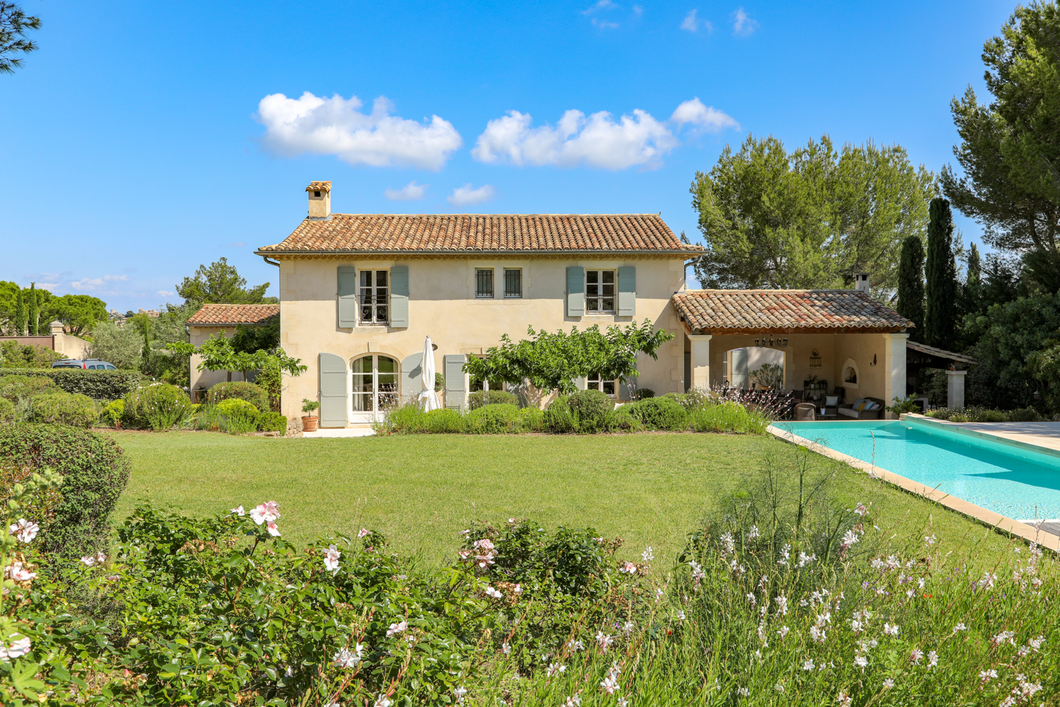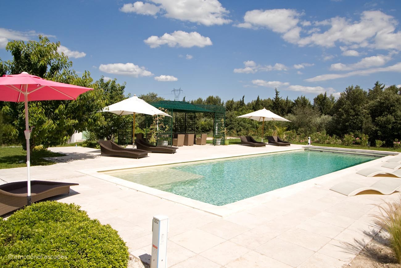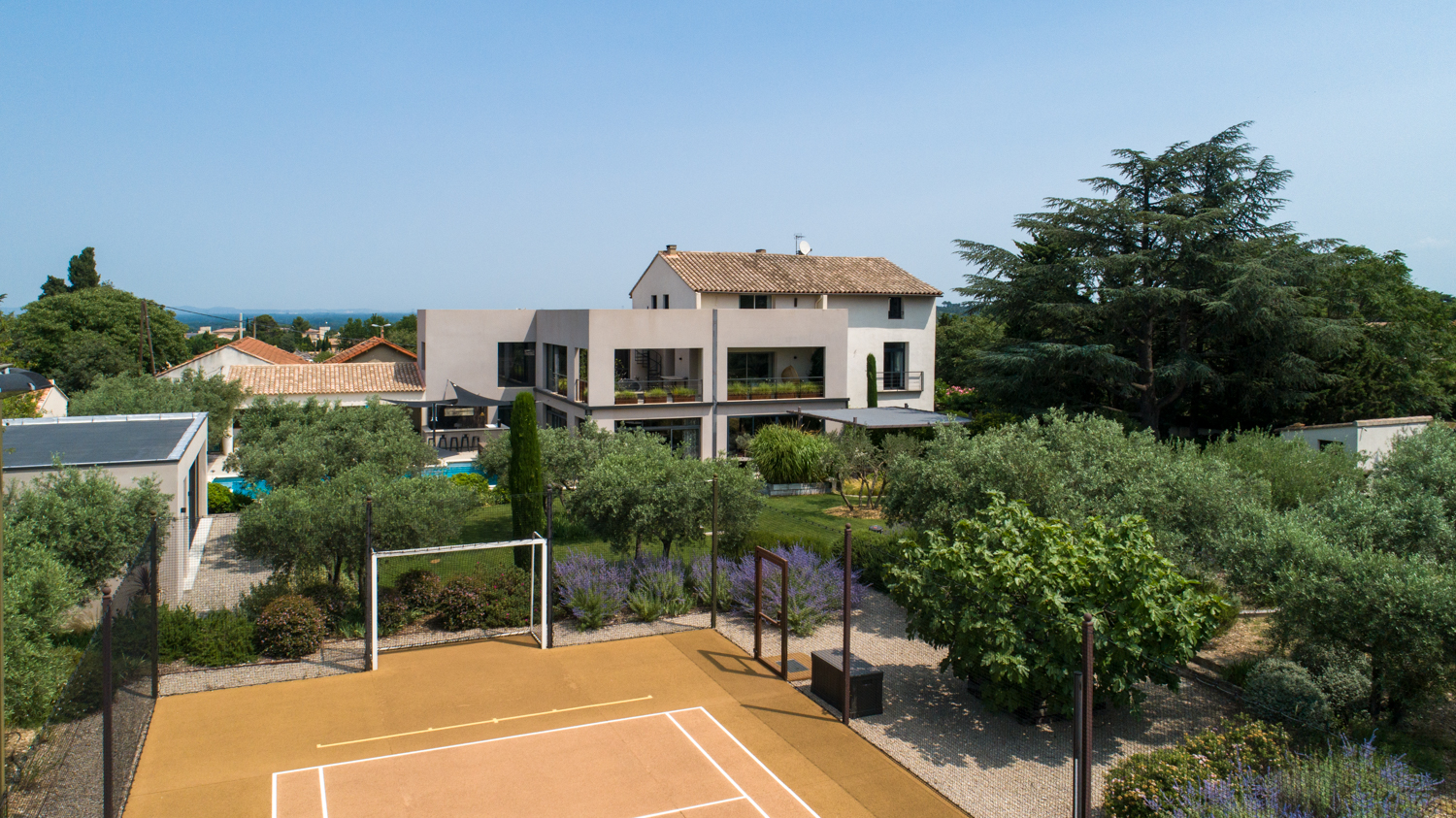 Near the Alpilles, sumptuous contemporary villa. You will be charmed by its large spaces, 550m2 of living space on a 3500m2 plot of land with heated swimming pool, children’s pool, pull house, summer kitchen, petanque court and multi-sports court (trainers, tennis, football, handball, etc…) Its well distributed suites guarantee your privacy: outbuilding, master room etc.. ... Read more