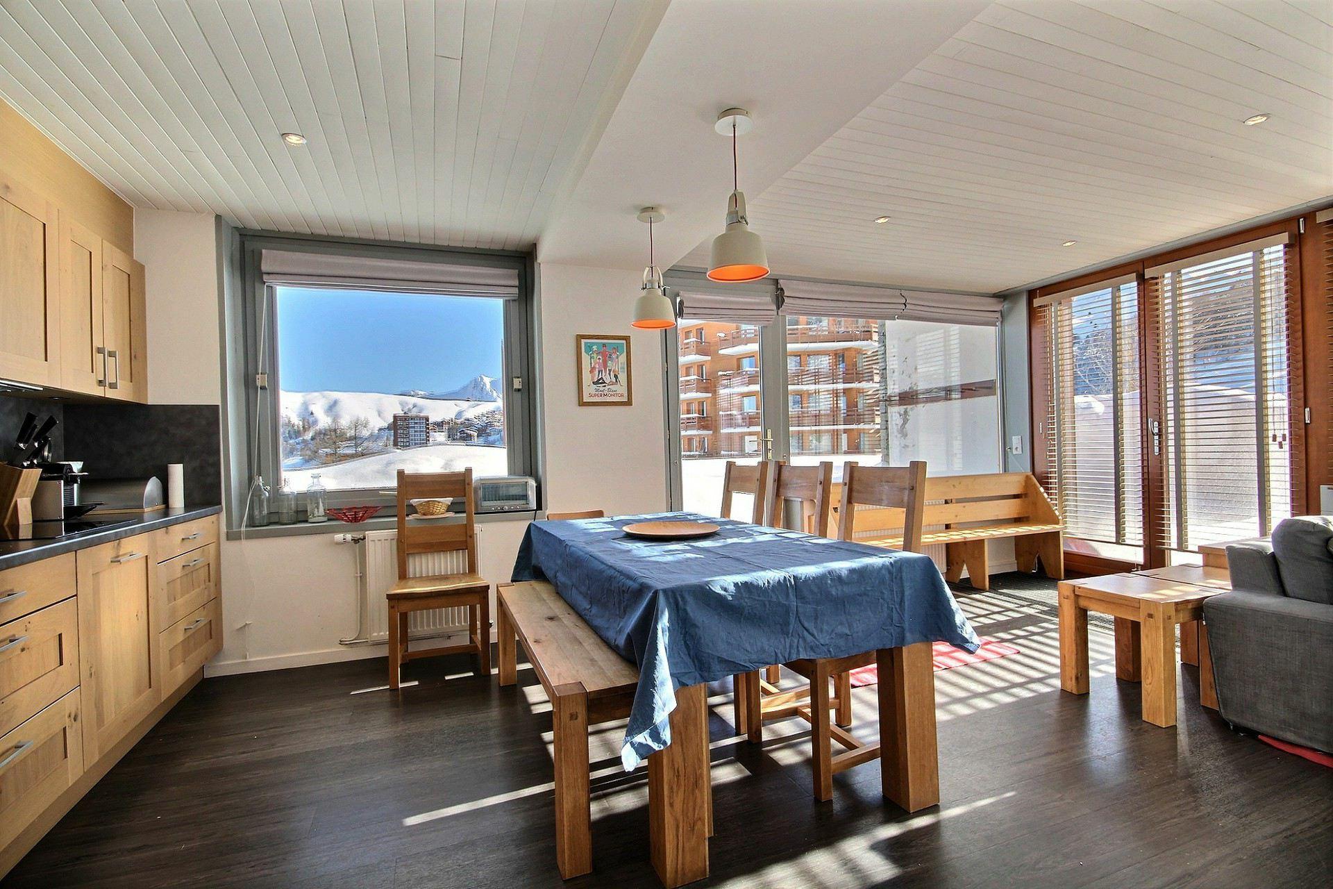 L'appartement Grand Chalet des Pistes 205 profite d'une situation idéale à proximité immédiate des pistes dans le quartier du Rond-Point des Pistes à Méribel. Appartement de prestige aux équipements haut de gamme avec l'accès au SPA de la résidence.. Idéal pour les familles nombreuses.