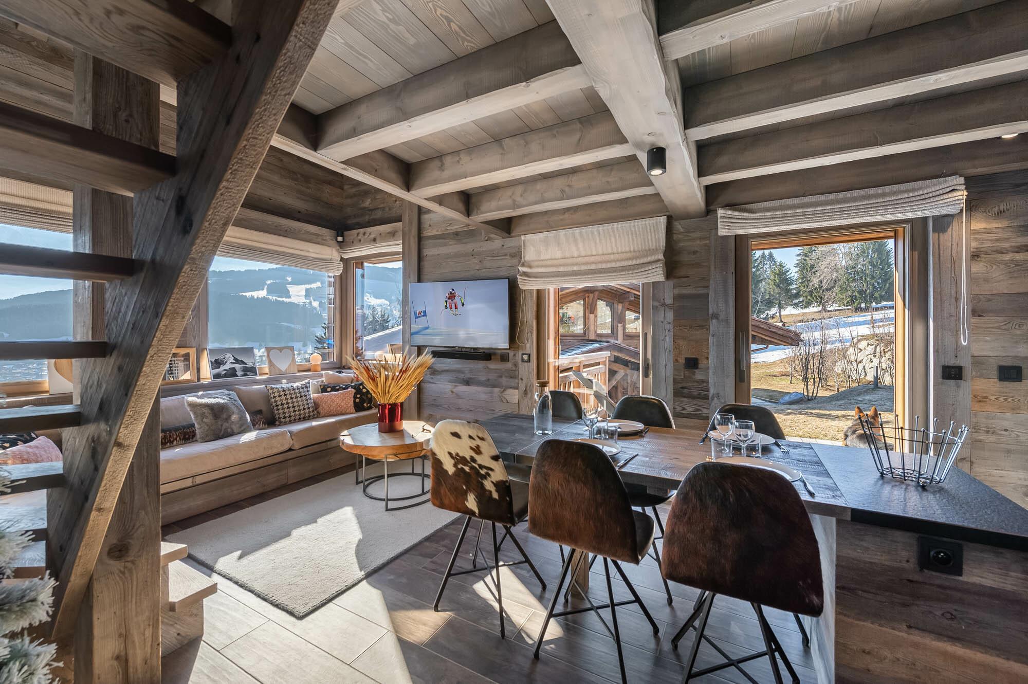 Le Chalet Le Moulin est idéal pour accueillir les groupes ou pour les réunions de famille. Pour plus d'espace il est possible de le louer avec le Chalet Le Petit Moulin. Le chalet est un ancien moulin qui a été rénové dans un style montagnard chic. Grande terrasse ensoleillée avec vue sur les montagnes.