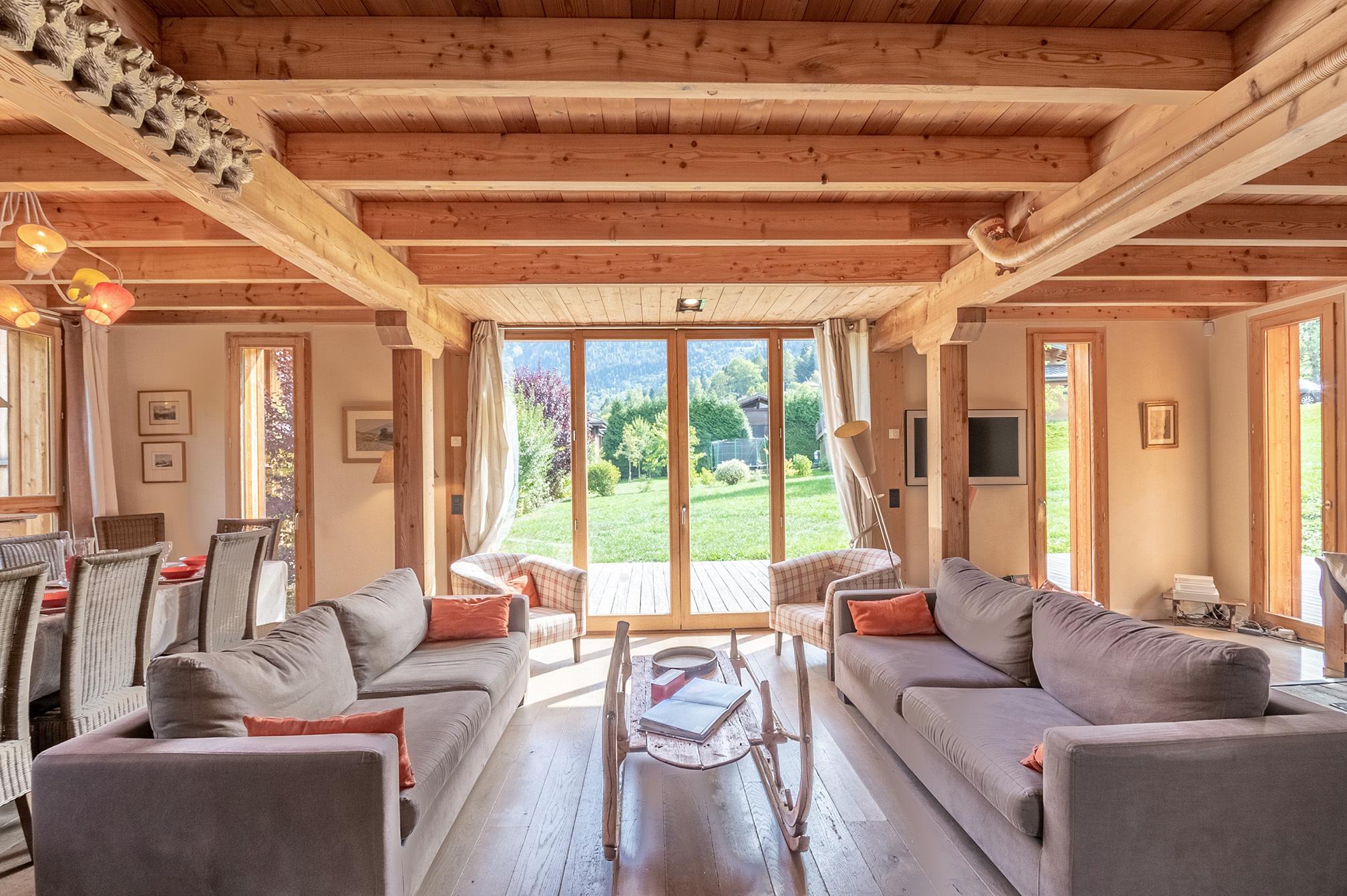 Très beau chalet contemporain, situé à seulement 200 mètres des pistes du Prarion, dans la station des Houches. Son grand jardin de 1 500m² avec terrasse vous offre une magnifique vue sur le chaine du Mont-Blanc.