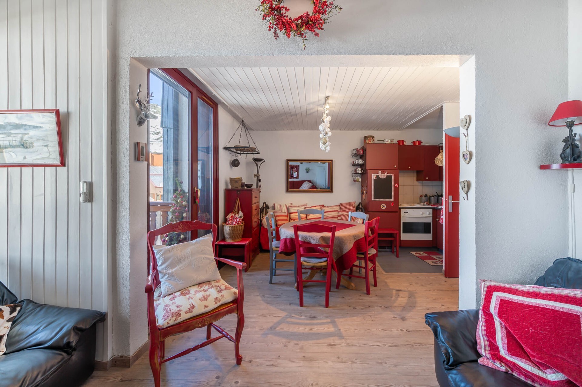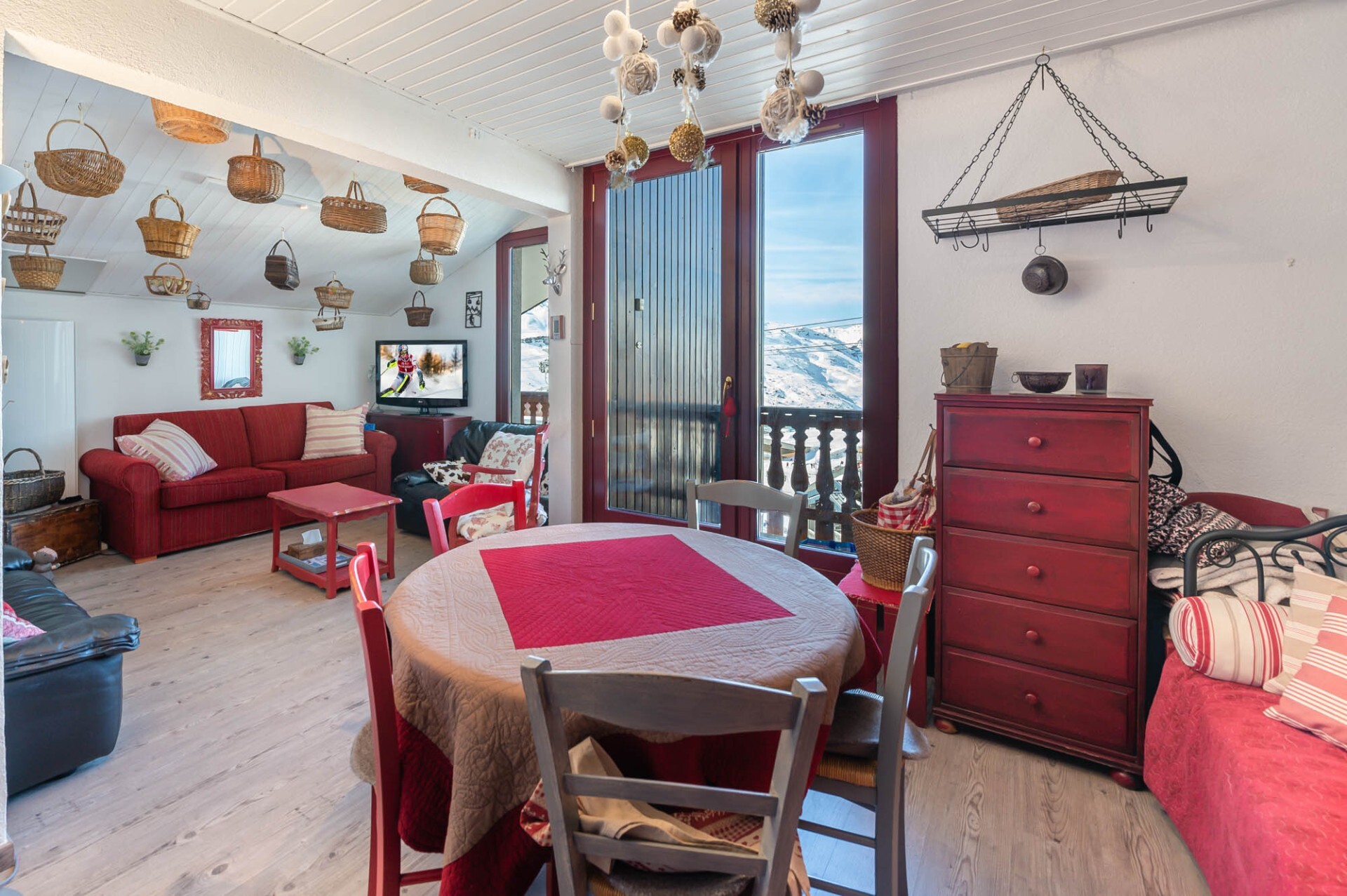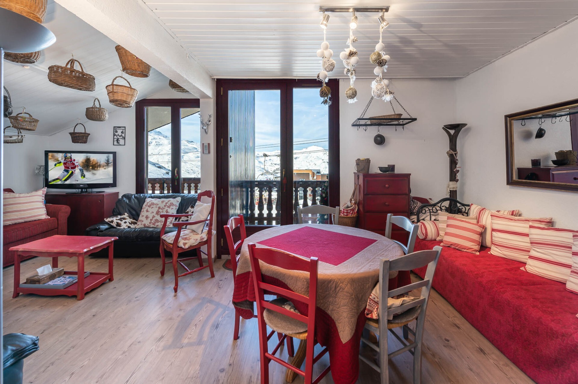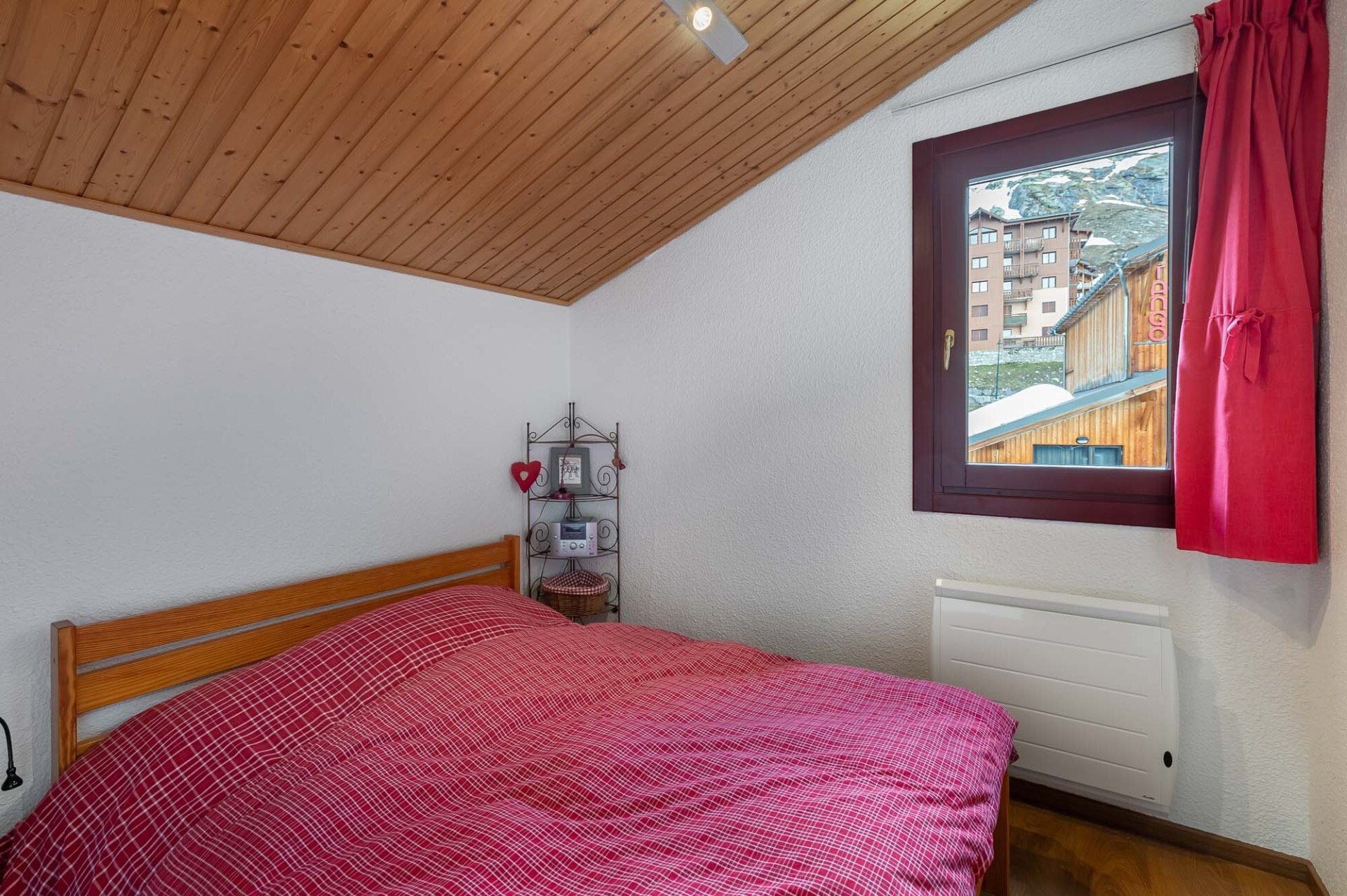 Mountain style apartment located on the top floor of a residence, in the heart of the resort of Val Thorens with a view on the surrounding peaks.
