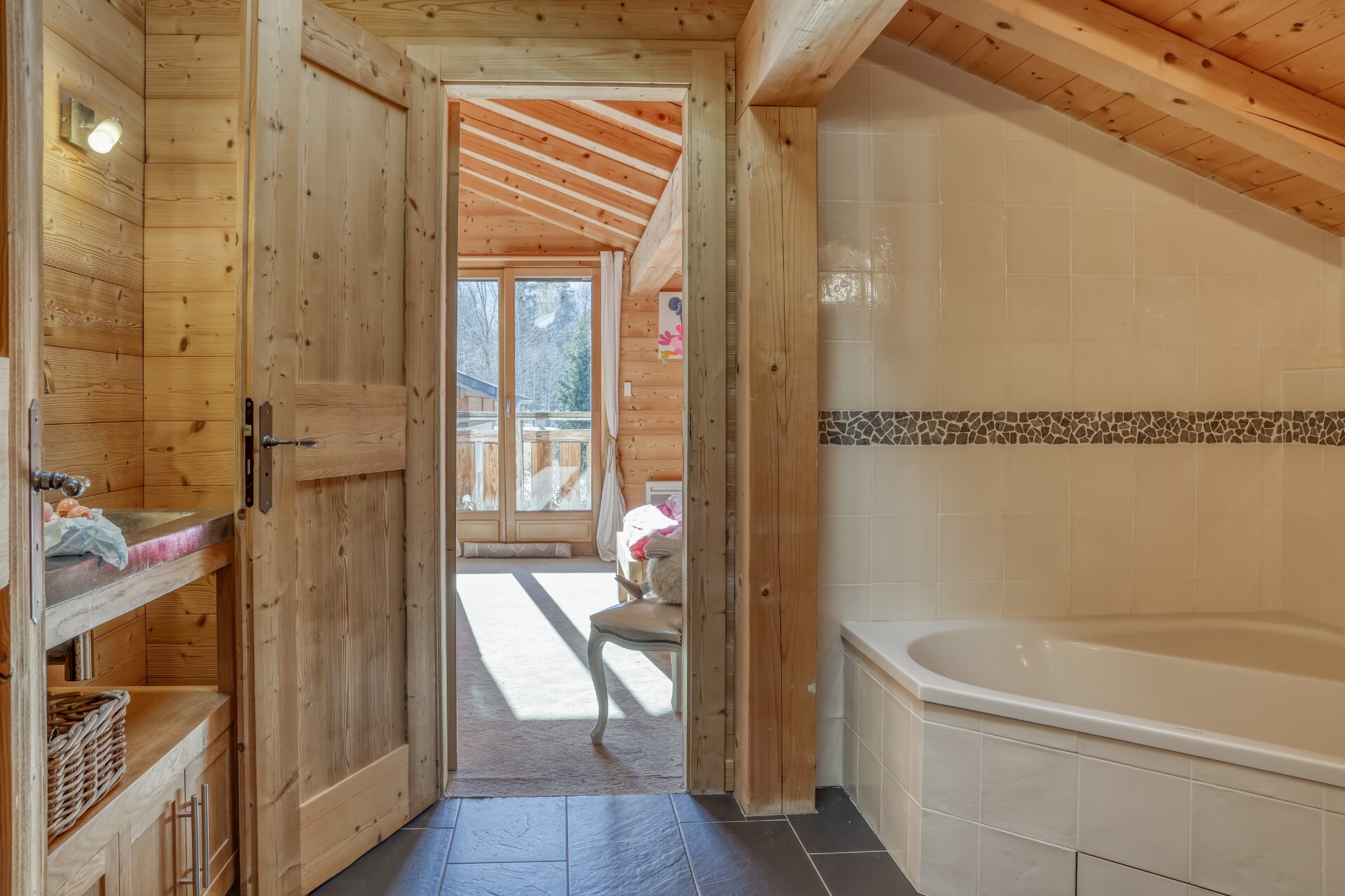 The chalet is built on a plot of land of about 700 sq.m. with beautiful sunny terraces.