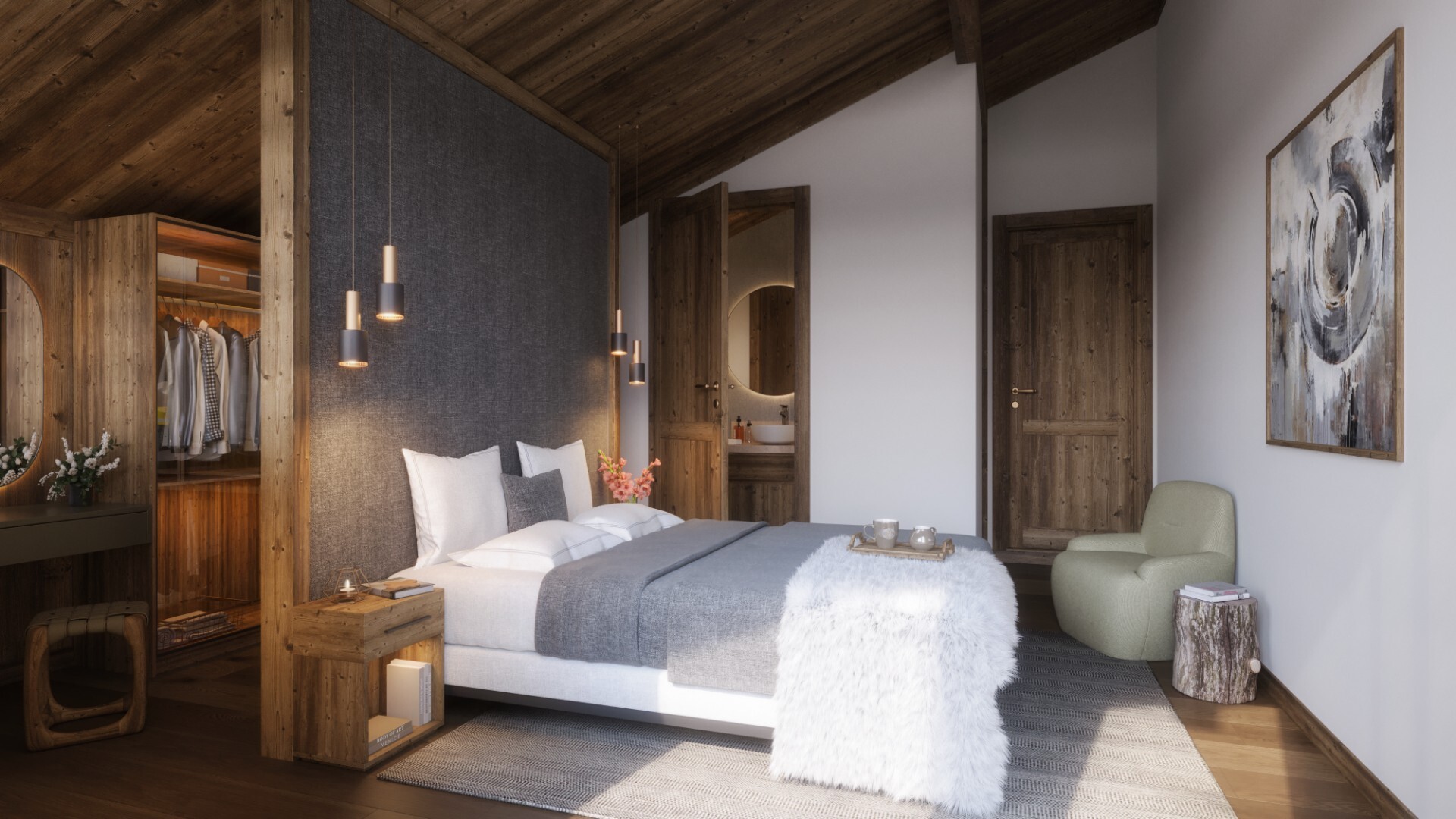 Delightful project thought by a local builder of reputation; find this new chalet delivered raw on a ground of a surface of approximately 453 m ² in the sector of Bossons. Composed of 4 bedrooms in suites, a kitchen open to the living/dining room, a ski room and a garage, an ideal chalet to welcome those precious moments with family or friends.
