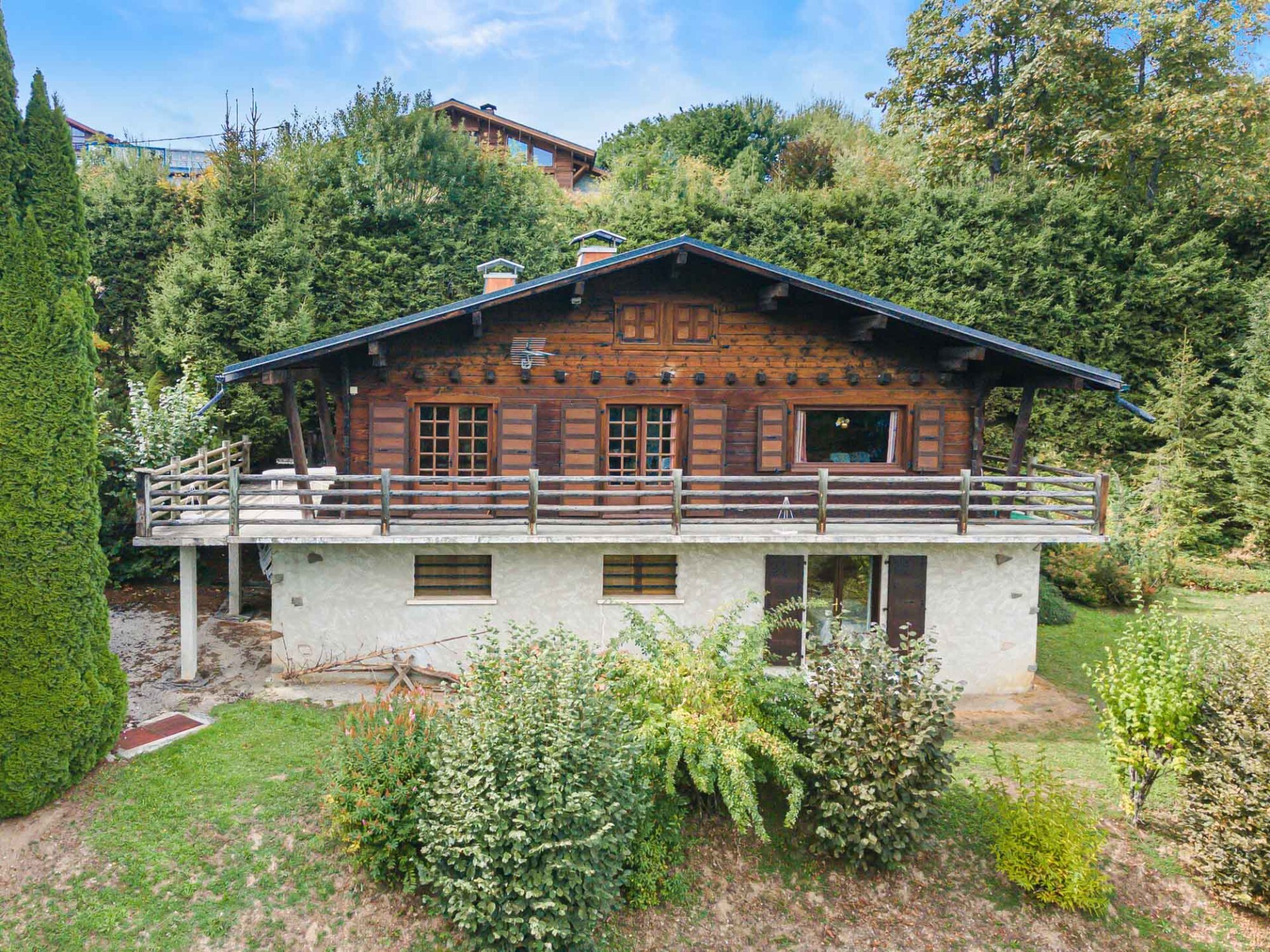 On the heights of Combloux facing the Mont Blanc chain, authentic log chalet with a total surface area of approximately 280 sq.m built on a large plot of land of approximately 2317 sq.m. Located near the ski slopes, this chalet from the 70’s has many assets. The large terraces on the south side allow you ... Read more