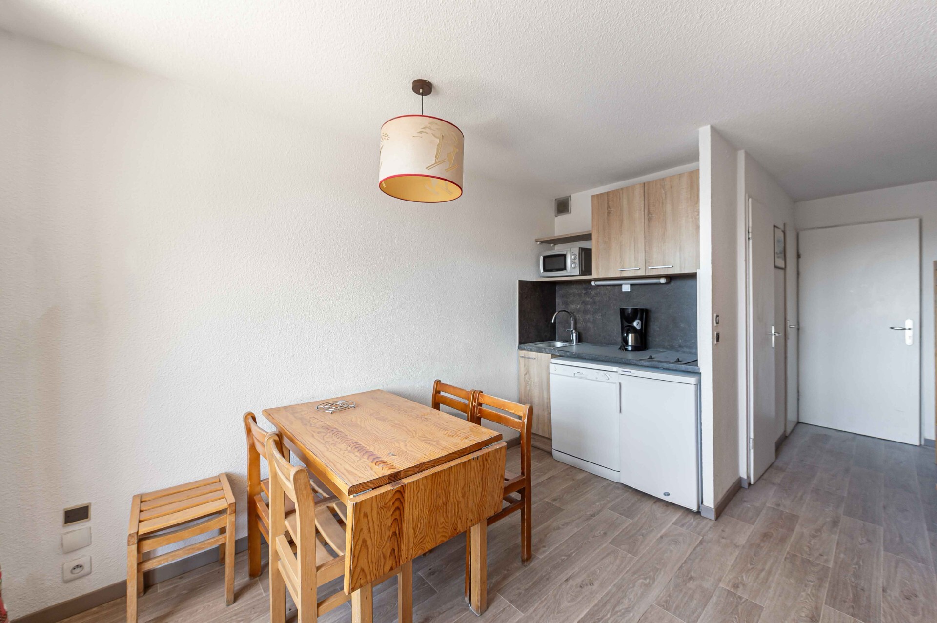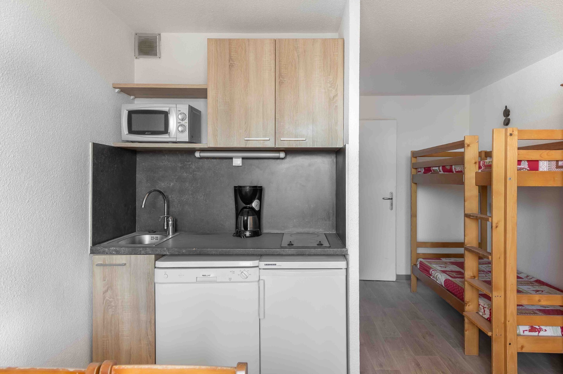 This 19 sq.m studio sleeps 4 and comprises a kitchen opening onto a living room opening onto a balcony, a fully renovated shower room offering a modern and functional space, a separate toilet for added comfort, and a sleeping area with a bunk bed.