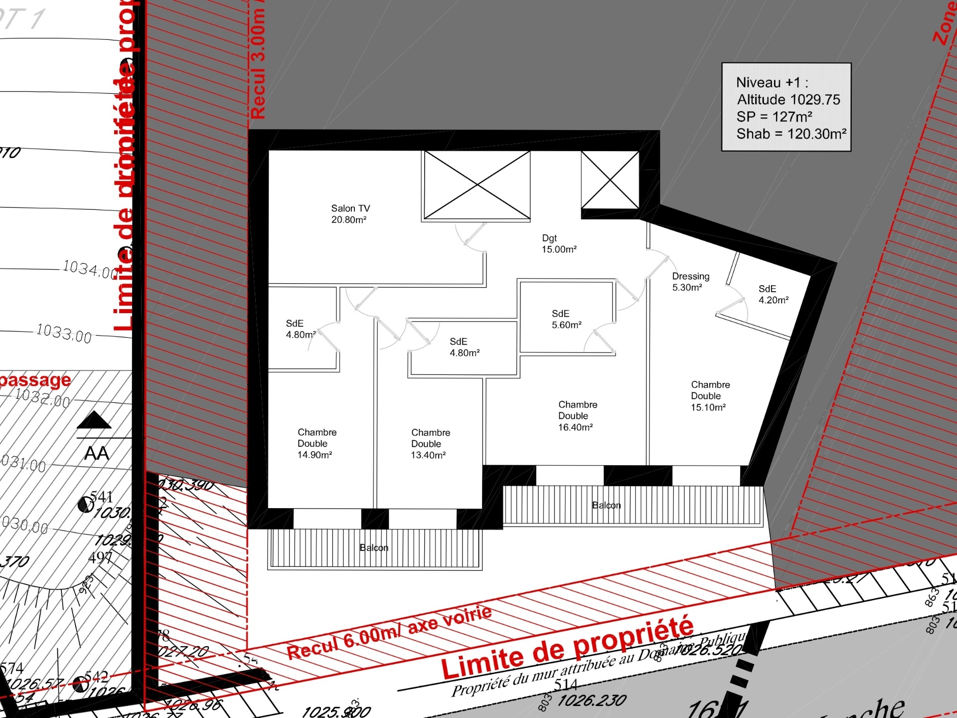 A developable plot of land with full planning permission already granted to build a very spacious 6 bedroom 6 bathroom chalet of 325m² of habitable space over 4 floors including space for a pool and spa area, cinema room, and a huge open living room of 95m² with a 40m² balcony terrace. Includes 2 master suites occupying the upper floor of the chalet. Plus a big double garage.