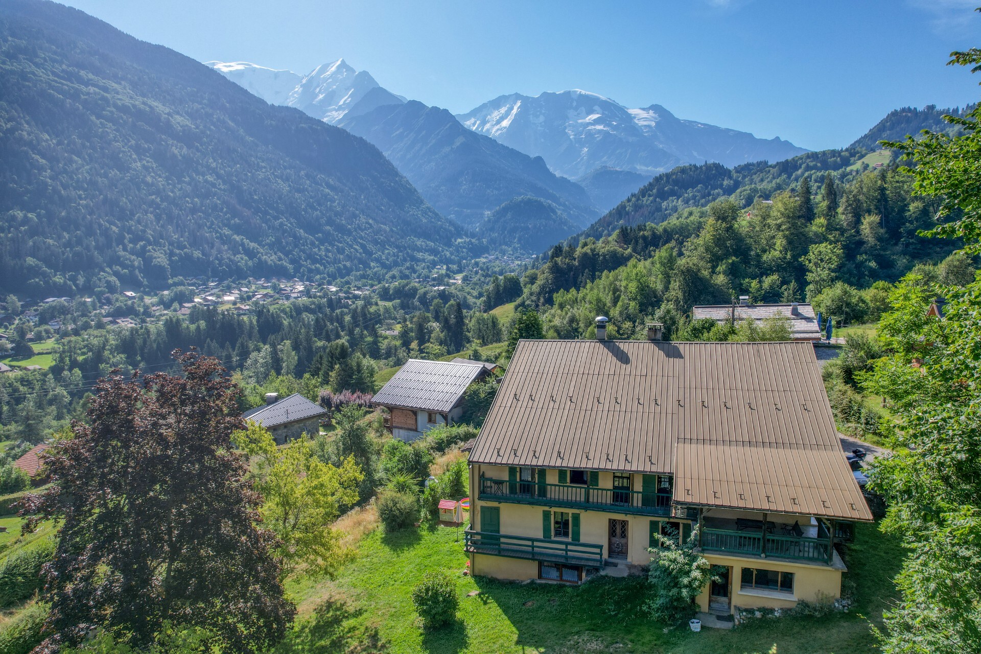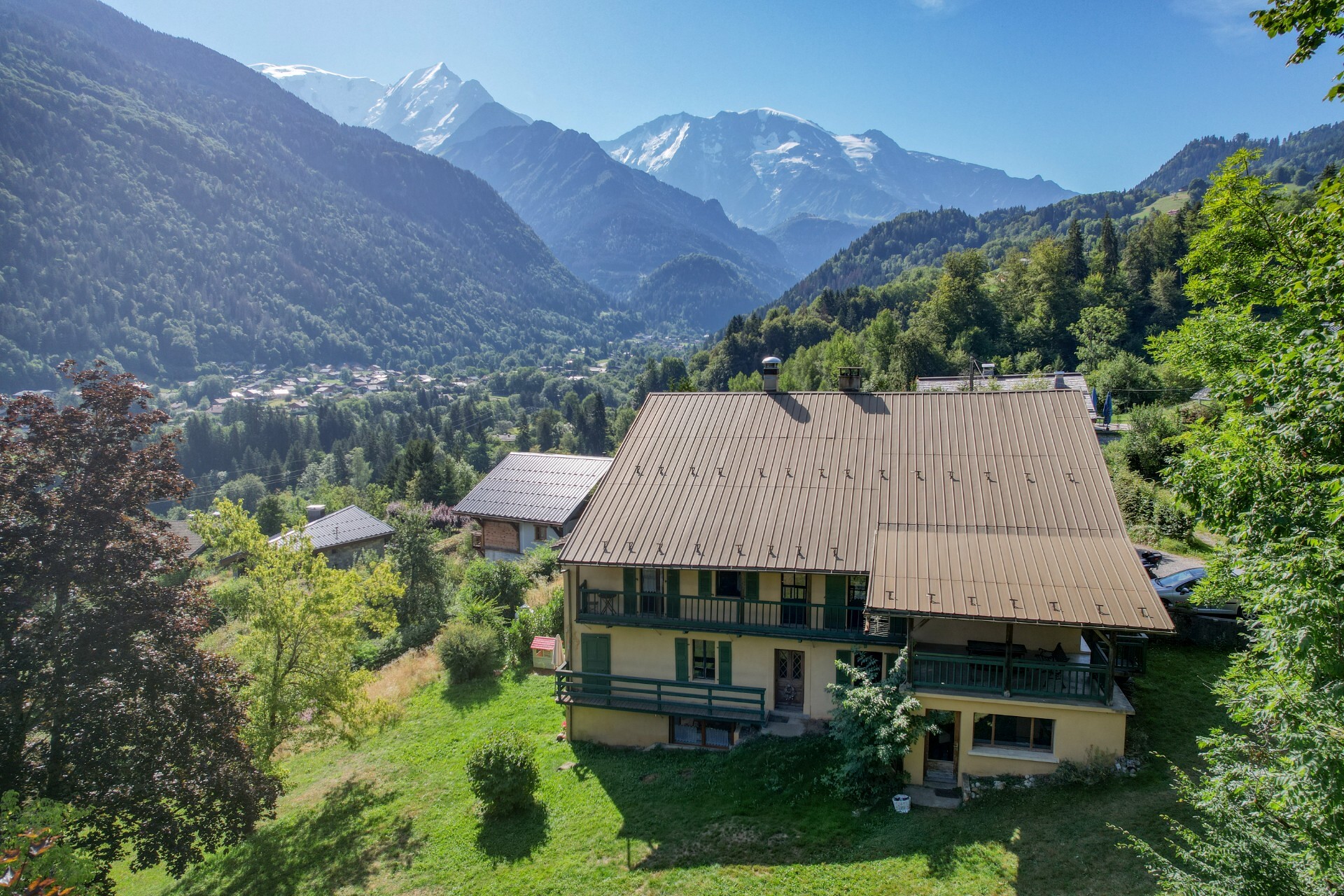 All built on a very attractive plot of around 2,725 m², most of which can be built on and faces south-east, with a dominant view over the village of Saint Gervais Mont Blanc, the Dômes de Miage, the Prarion and the Fiz mountains.