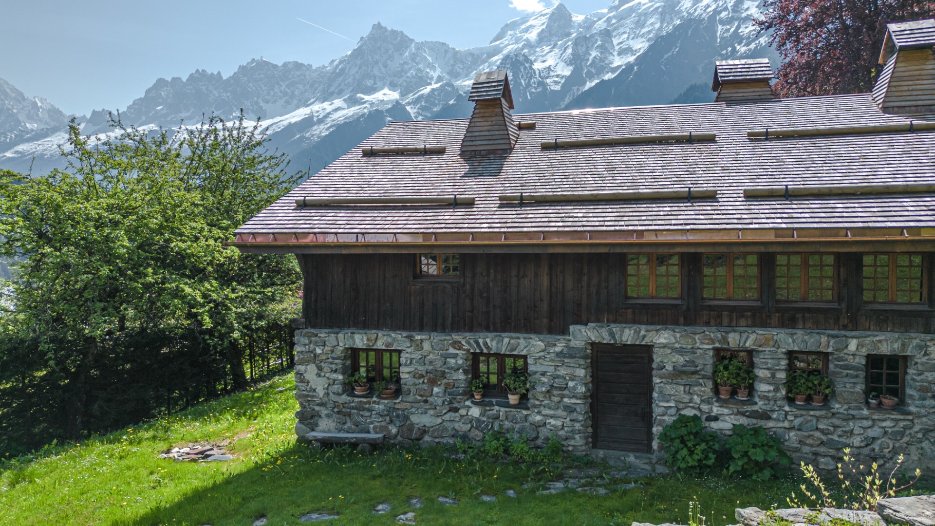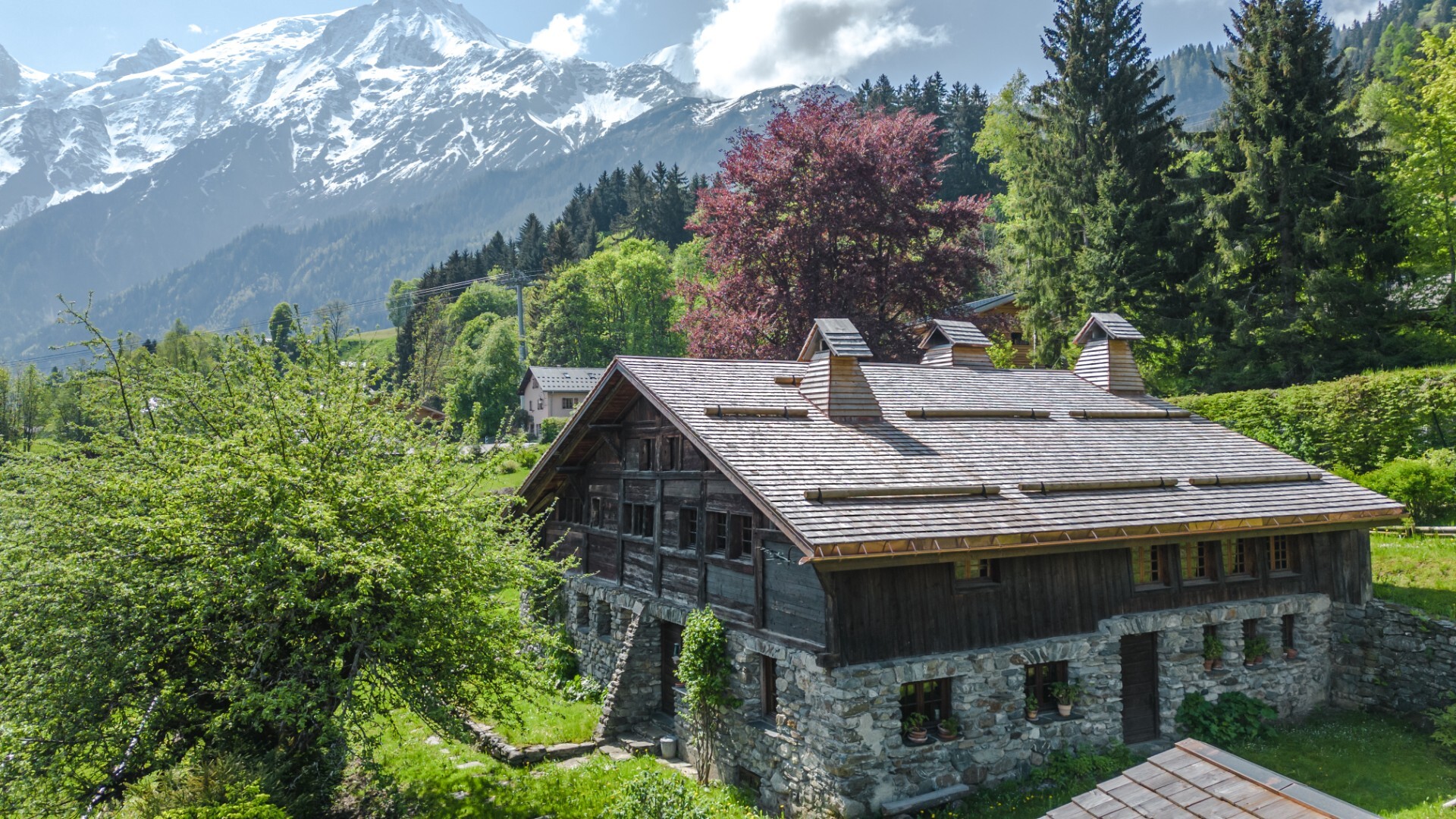 Located in a quiet area of Les Houches, close to the ski slopes, with a stunning panoramic view of the Mont Blanc massif, discover this historic property renovated in the pure respect of the local architecture.