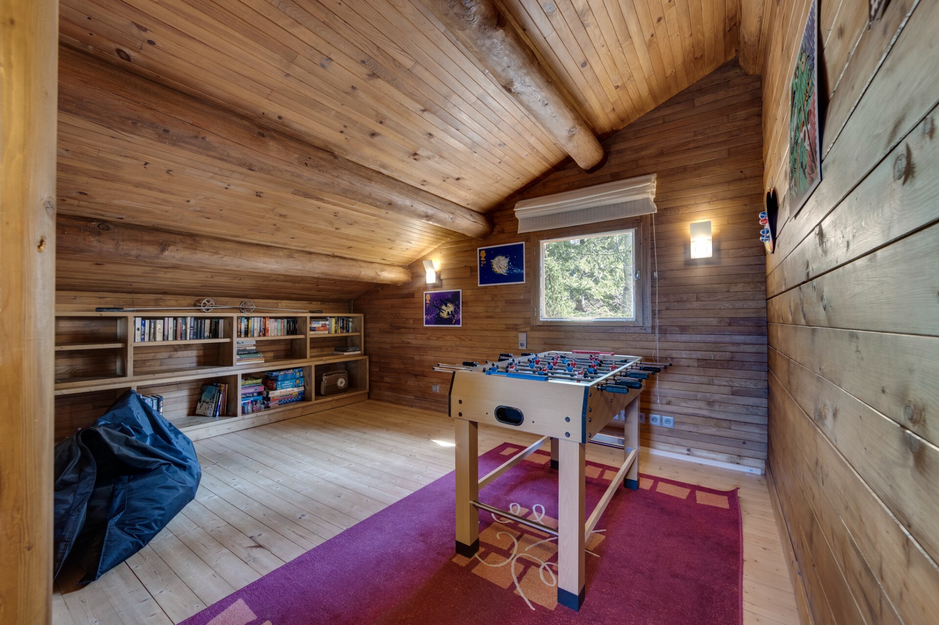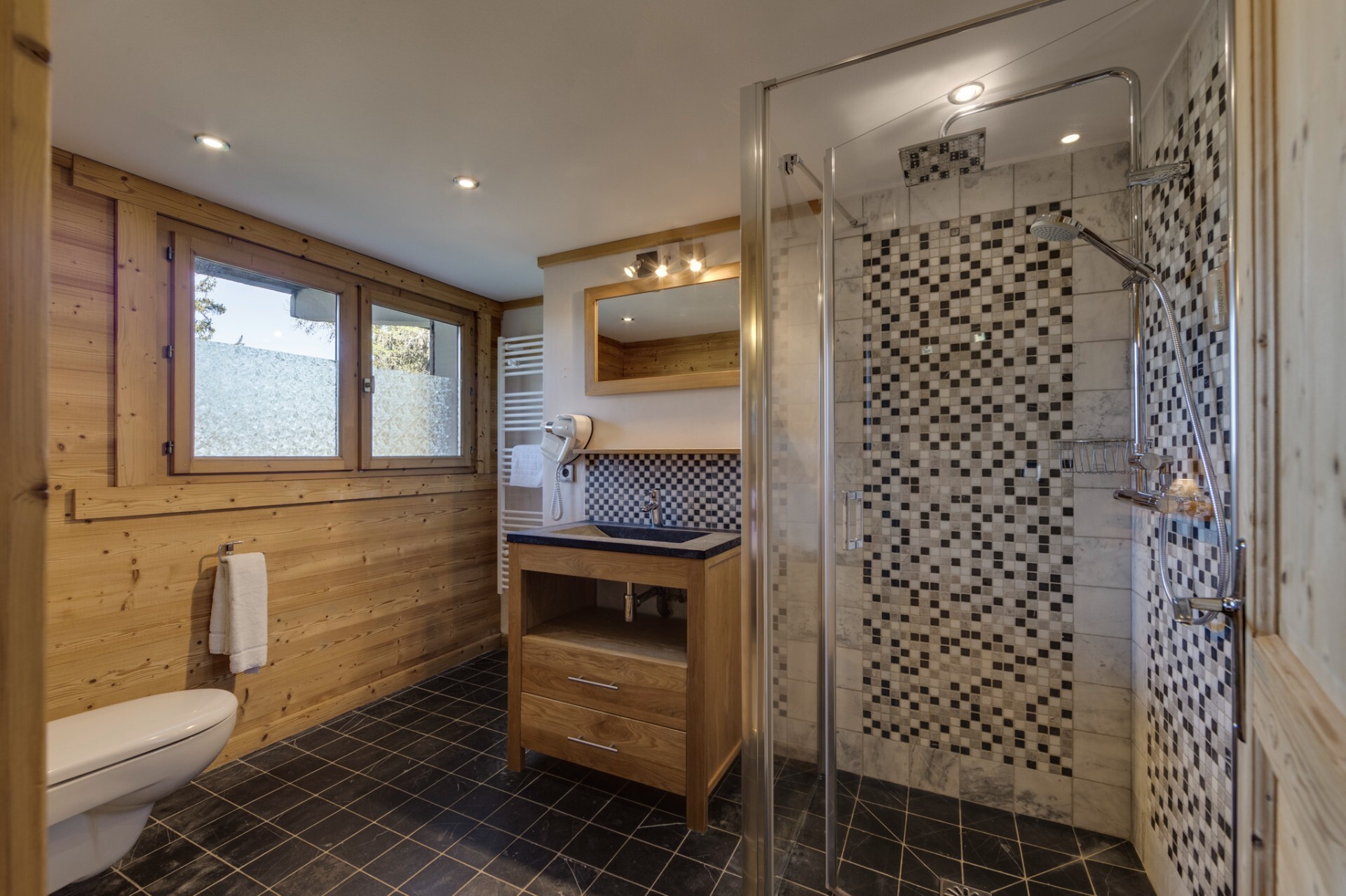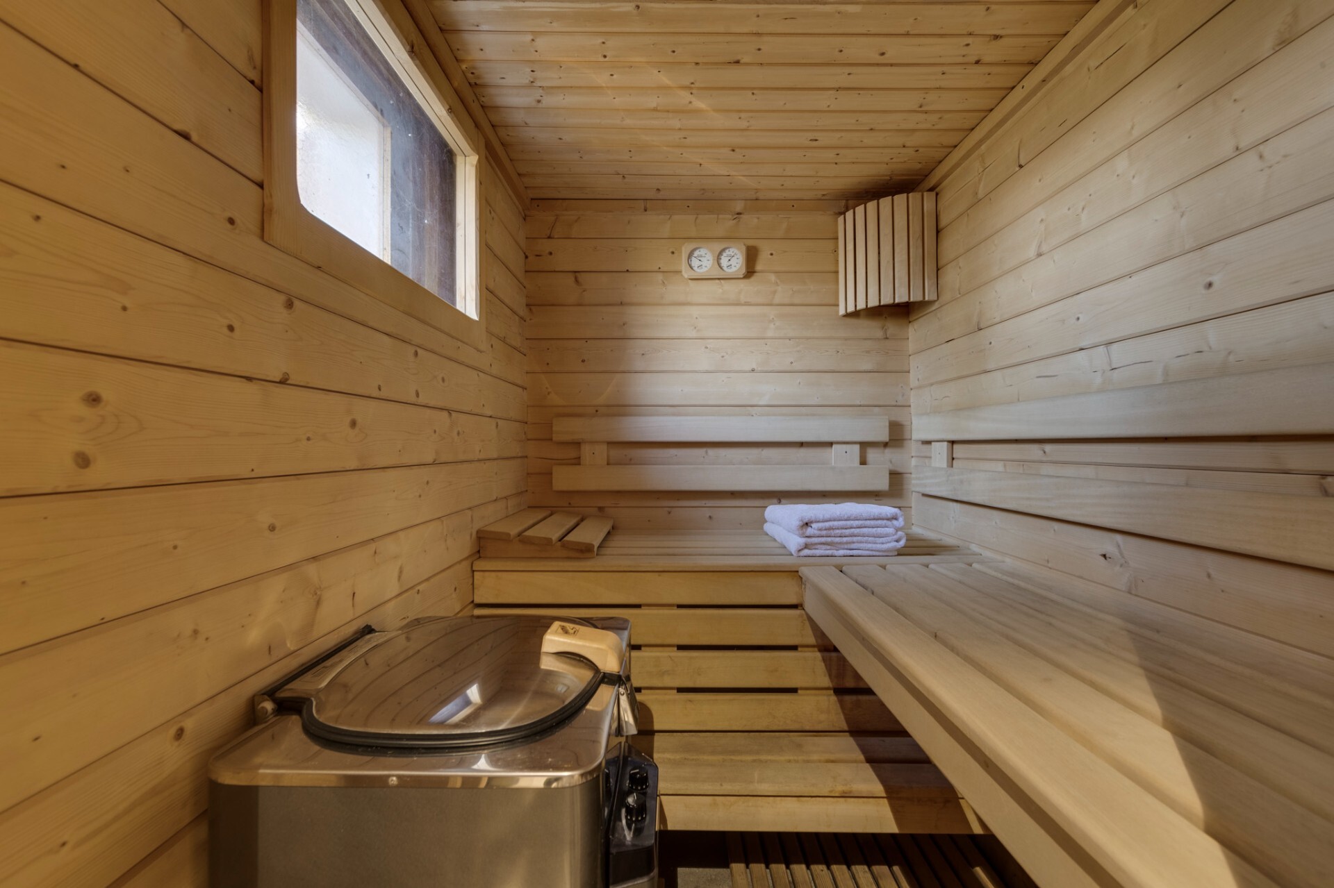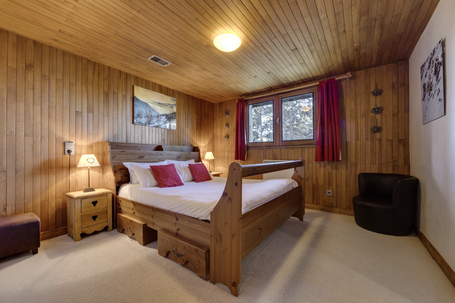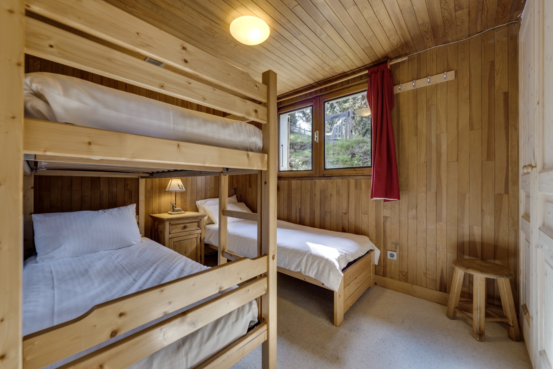 Built on three floors, the chalet offers spacious volumes and benefits from natural light thanks to its large openings. It has five bedrooms, two of which are en suite with shower and toilet, two bathrooms with toilet, a laundry room, a large ski room, a sauna and a games room.