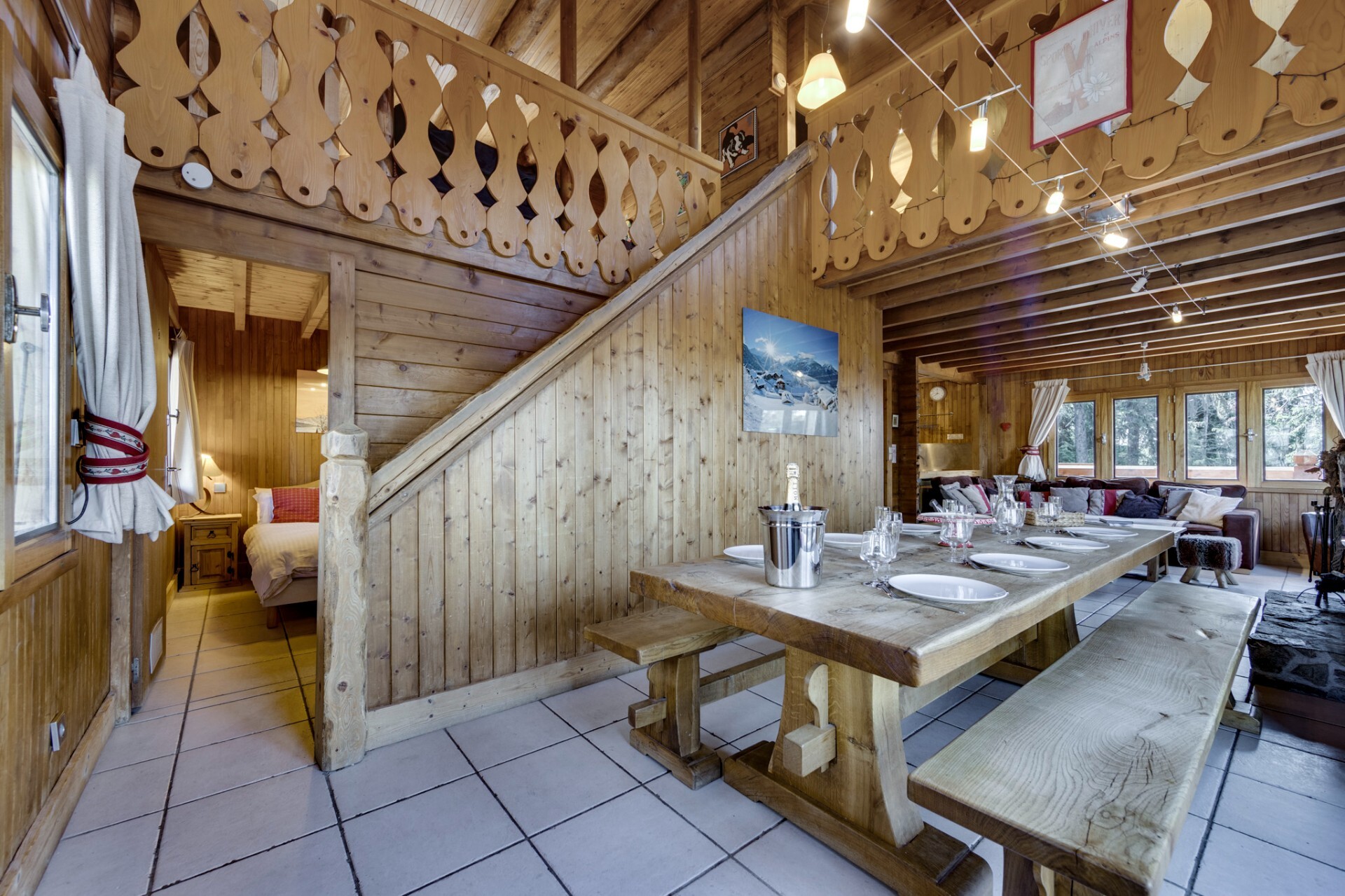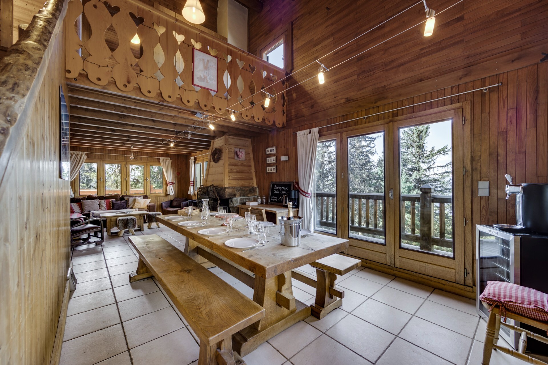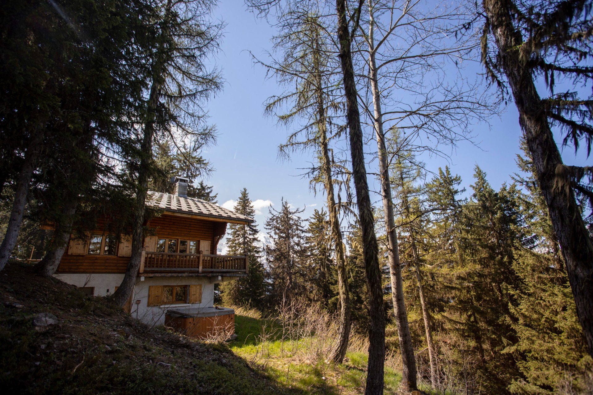 The chalet has the advantage of being located on a vast 1300 sq.m plot of land with an outdoor jacuzzi, ideal for relaxing after a day spent in the mountains.