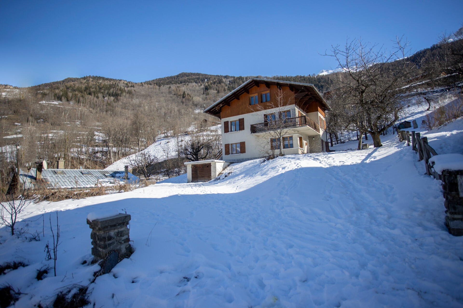 Discover in exclusivity this village house built on a spacious plot of land in the heart of Sainte-Foy-Tarentaise. Spread over three levels, it offers a surface of about 194 sq.m. In addition, there is an additional building plot.