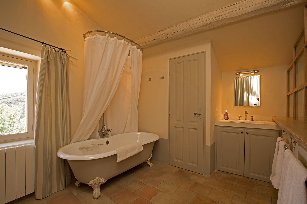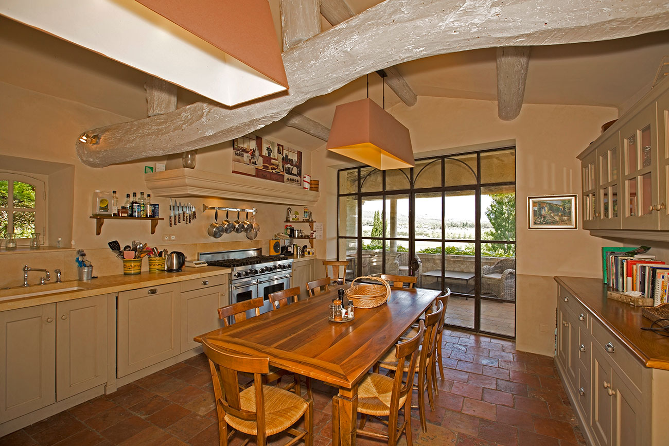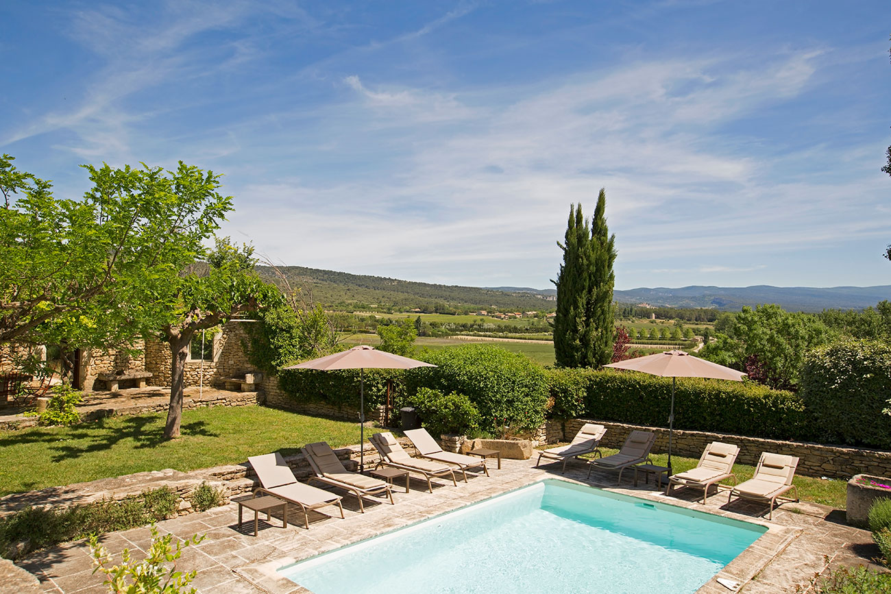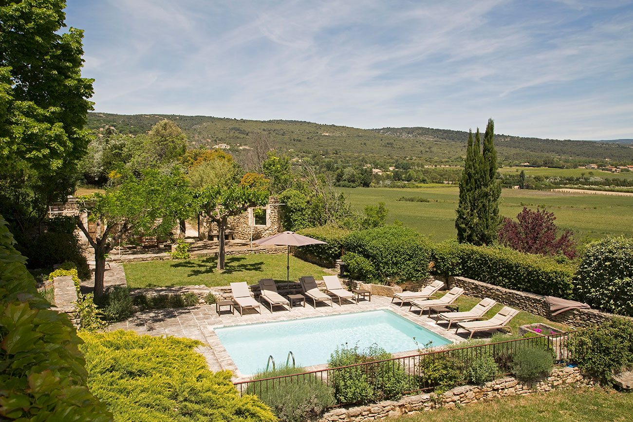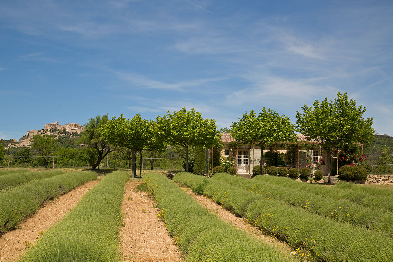 This large Luberon luxury villa estate covers a plateau of 10 acres and includes a small vineyard, lavender field, pool and artificial grass tennis court. One side of the house has a stupendous and direct view of the perched hillside village of Gordes; from the other side, you get views over the Luberon. Walking distance to Gordes is about 2 km, but there is a hill part of the way, so it will take about 20-30 minutes. This luxury rental is a family owned private property.