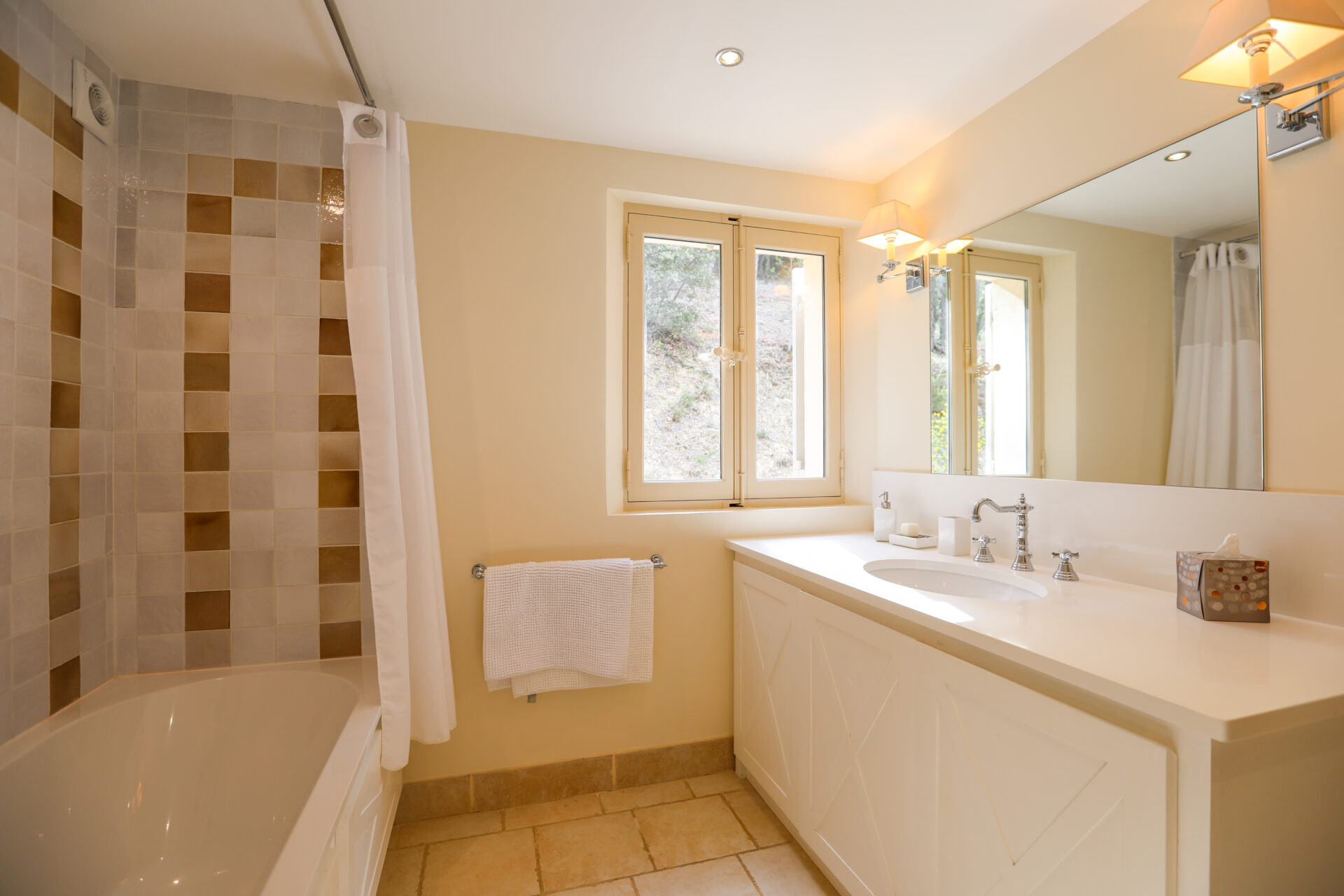 This luxurious villa rental offers everything you need for an enjoyable stay, with a heated swimming pool and artificial grass tennis court. Whatever the season, you’ll enjoy spending time outdoors at La Valentine. The surrounding countryside is so relaxing that you’ll be tempted to wander around all day. Chances are you’ll choose to walk the kilometre (1.6km) to the village rather than drive, to make the most of your time. The journey to the village takes around 20 minutes on foot, and the return over the hill takes around 25 minutes.