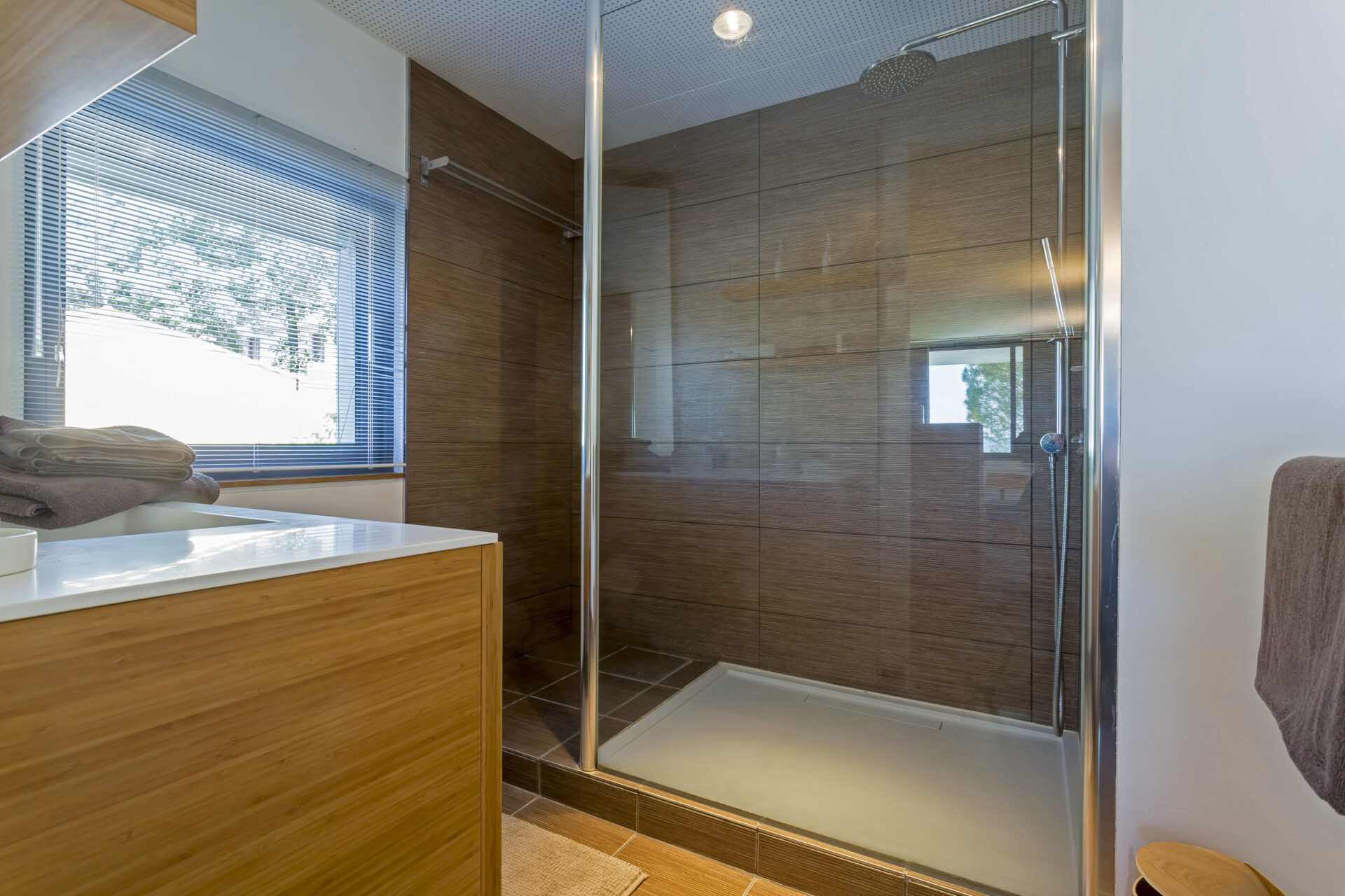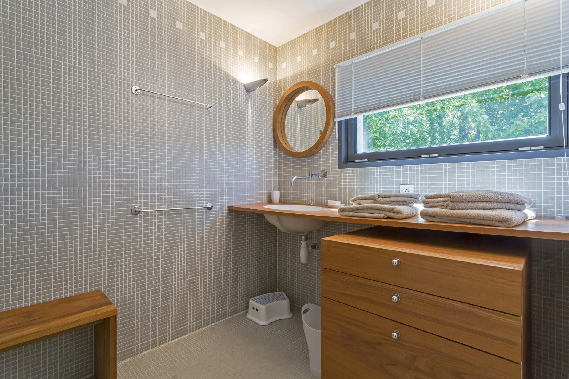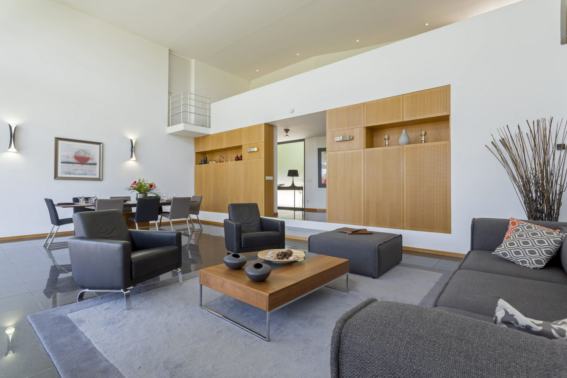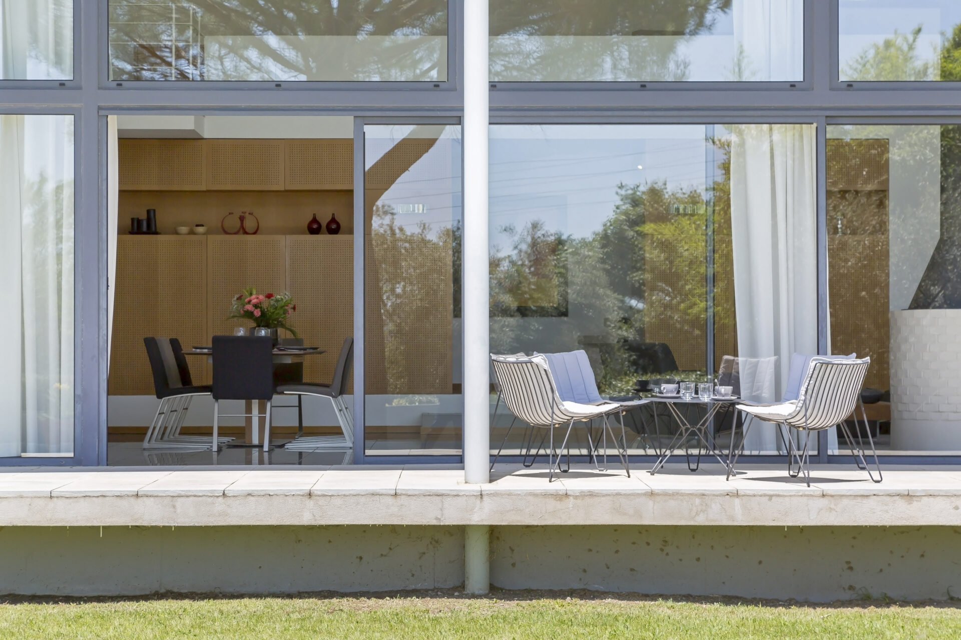 The house itself is quite unique in style for the area. Designed by a local architect, it was intended to be open, light and spacious, in striking contrast to the Provençal mas or villa. The very spacious living room looks out south through the glass façade onto the tailored garden, the village and the nearby medieval castle.